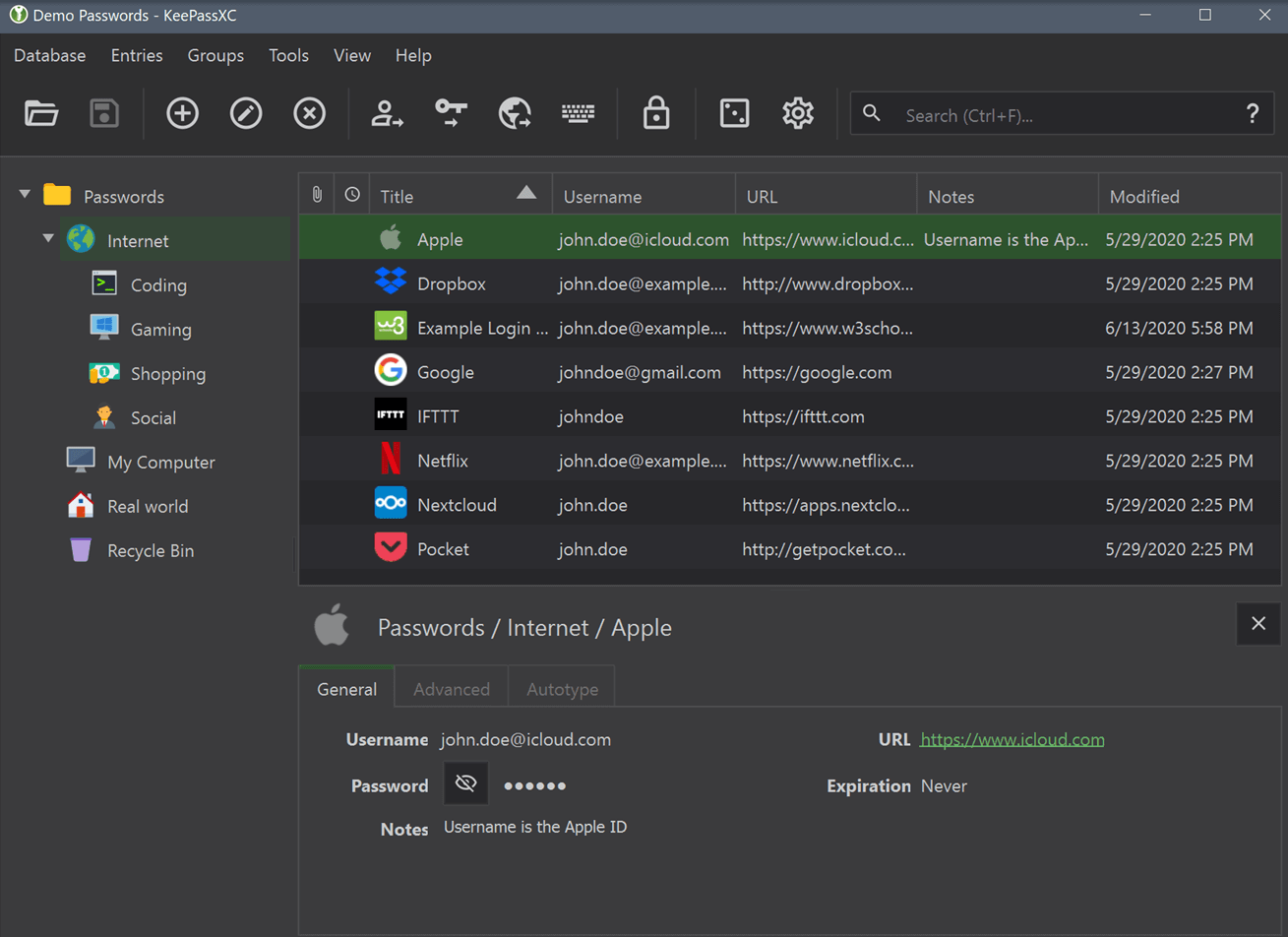 KeePassXC предоставляет пользователям удобный и интуитивно понятный интерфейс для организации и доступа к хранимым данным, включая возможность создания категорий, поиска и фильтрации записей. Кроме того, он поддерживает синхронизацию базы данных между различными устройствами через облачные сервисы или локальные сетевые хранилища.