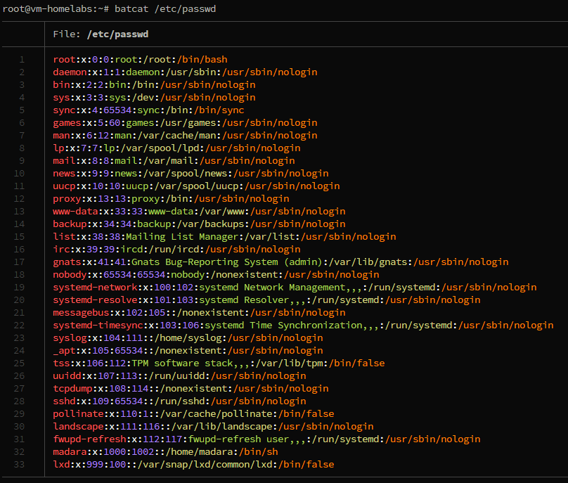 bat — это продвинутая версия команды cat, предназначенная для просмотра содержимого файлов в терминале на Linux. Она предоставляет дополнительные функции, такие как подсветка синтаксиса, нумерация строк и встроенная поддержка работы с несколькими файлами. bat делает чтение и просмотр кода и текстовых файлов более удобным и наглядным, особенно для разработчиков и системных администраторов.