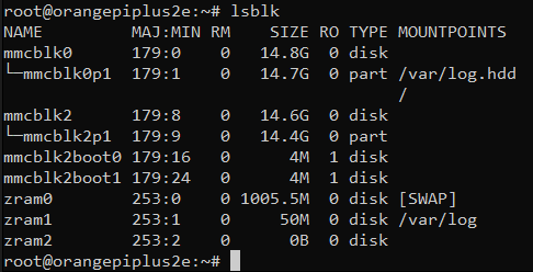 На Orange Pi, внутреннее eMMC-устройство обычно нумеруются как mmcblk1. Внешние устройства, такие как SD-карта или флешка, скорее всего будут обозначены как mmcblk0.