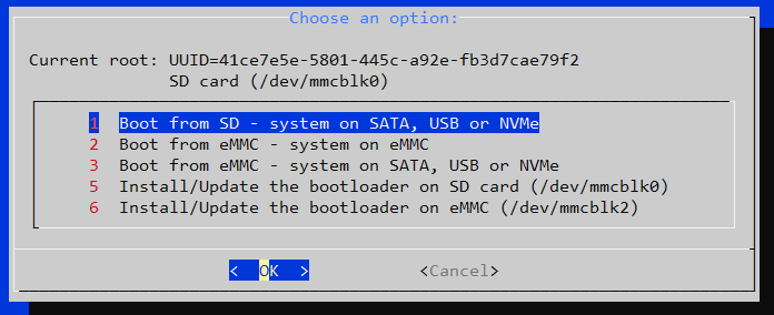 - boot from SD — system on SATA, USB or NVMe — загрузочный раздел (/boot) останется на SD-карте, система переедет на sata, usb или ssd.